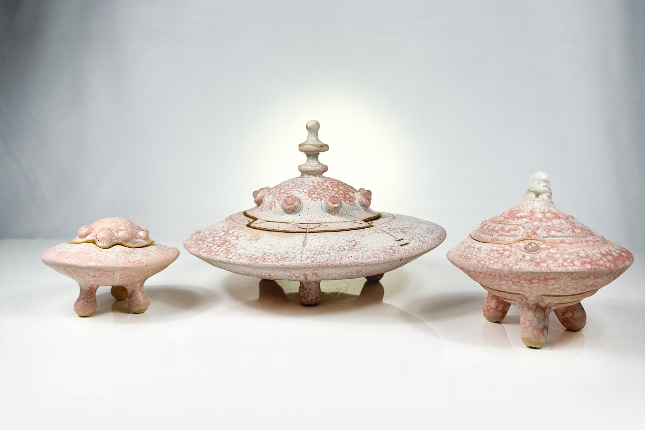 Tactile artifacts from another world — mindful curves in soft hues & cratered textures, infused with cosmic curiosity
